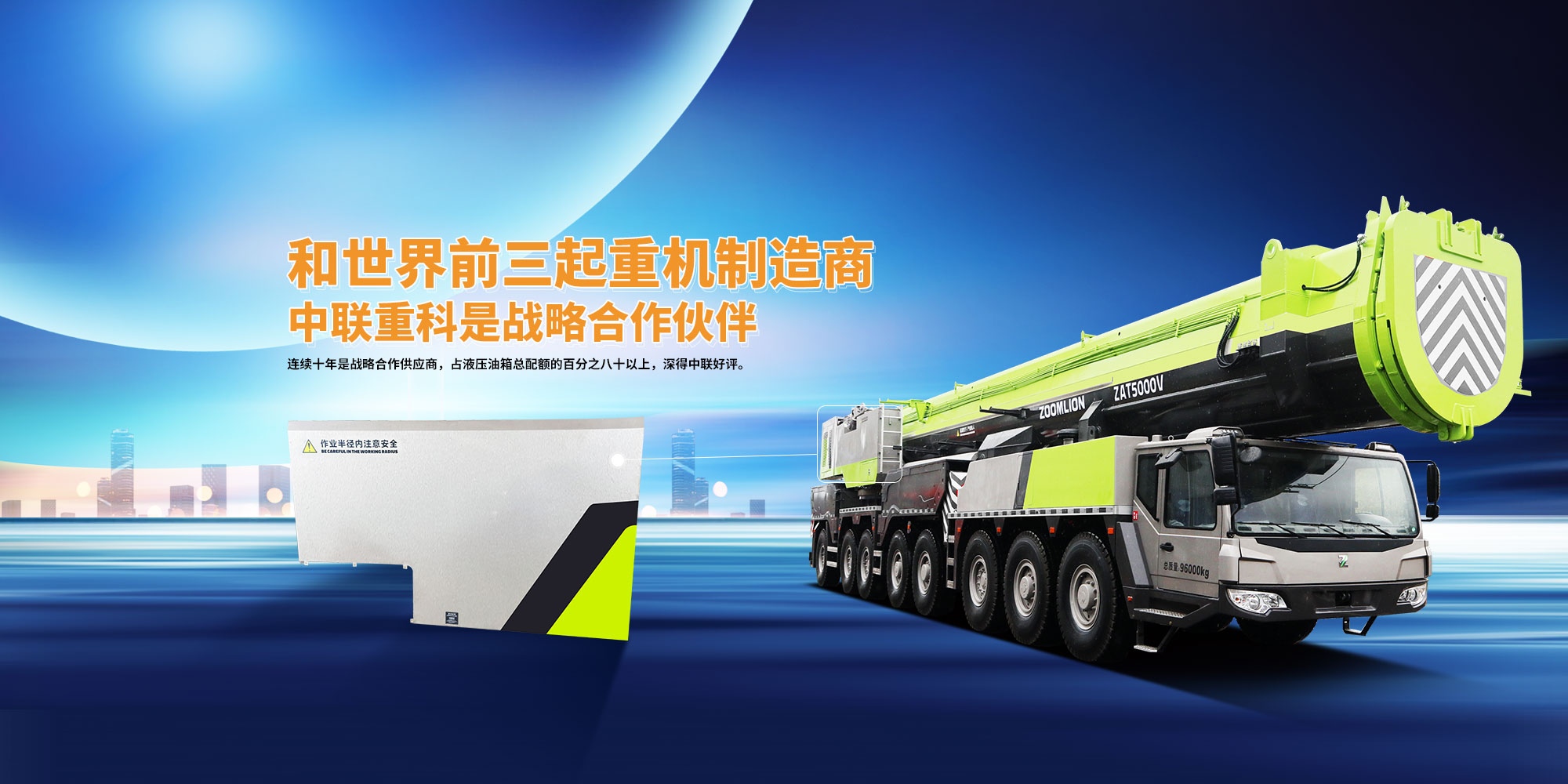 公司連續(xù)三年在長沙中聯(lián)重科環(huán)境產(chǎn)業(yè)有限公司是優(yōu)秀供應(yīng)商,在中聯(lián)汽車吊公司也是優(yōu)秀供應(yīng)商,并且連續(xù)十年是戰(zhàn)略合作供應(yīng)商,占液壓油箱總配額的百分之八十以上,深得中聯(lián)的好評。